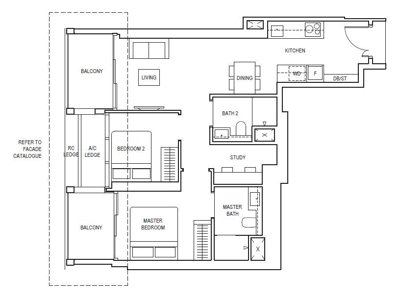 2 Bedroom + Study |