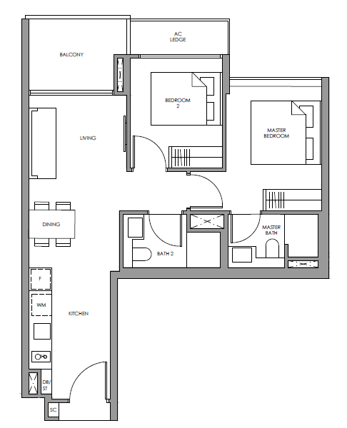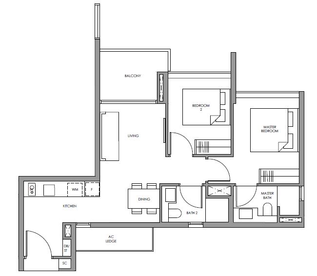 | 2 Bedroom (P) | 689 - 721 | 118 |