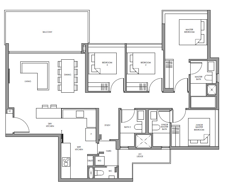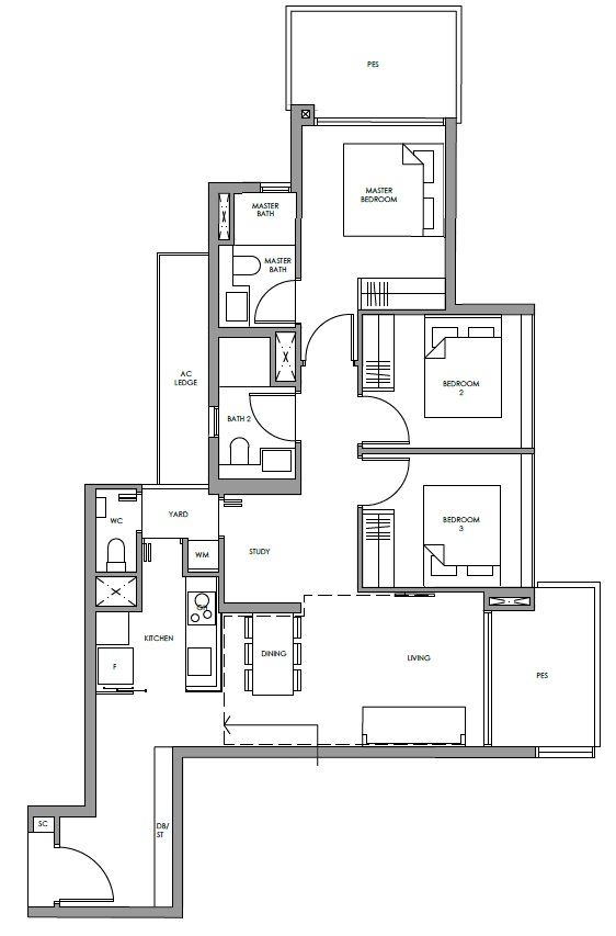 99 Yrs Leasehold 309 Units TOP Dec 2021 Height 40 Storey 1 Bed 1 Bedroom + Study 2 Bed 2 Bed + Study 3 Bed 4 Bed + Utility